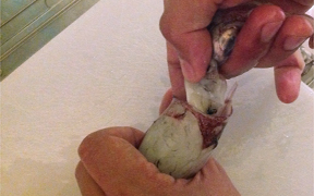 Come ultima operazione, bisogna eliminare gli occhi. Per farlo potete tagliate la parte con i tentacoli a metà e toglierli dall'interno con delle forbici o un coltello, oppure li schiacciate con le dita verso l'esterno.